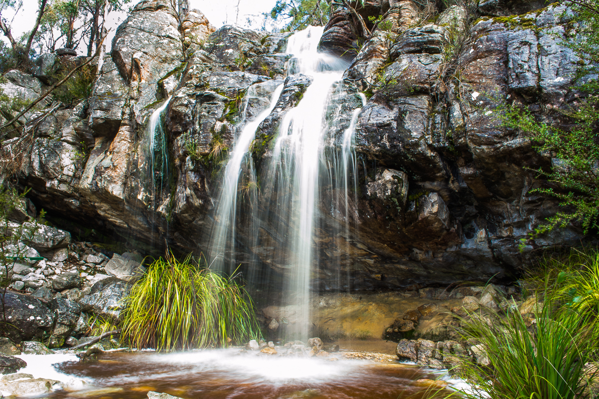 Yes, that is a rocky cavern tucked in behind the falls, allowing visitors to climb in behind the beautiful curtain of water! The walking track crosses right over the shallow stone-lined pool and continues on towards The Pinnacle.