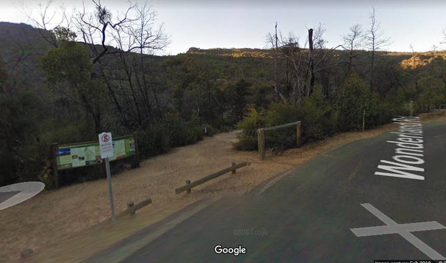 Here we go! The walking track begins from the Wonderland Carpark, and although visitors have the (much recommended) option of walking via the spectacular Grand Canyon, street view does not offer this alternative, so drop your little street-view-guy into the map at the carpark and head straight up the track alongside it.