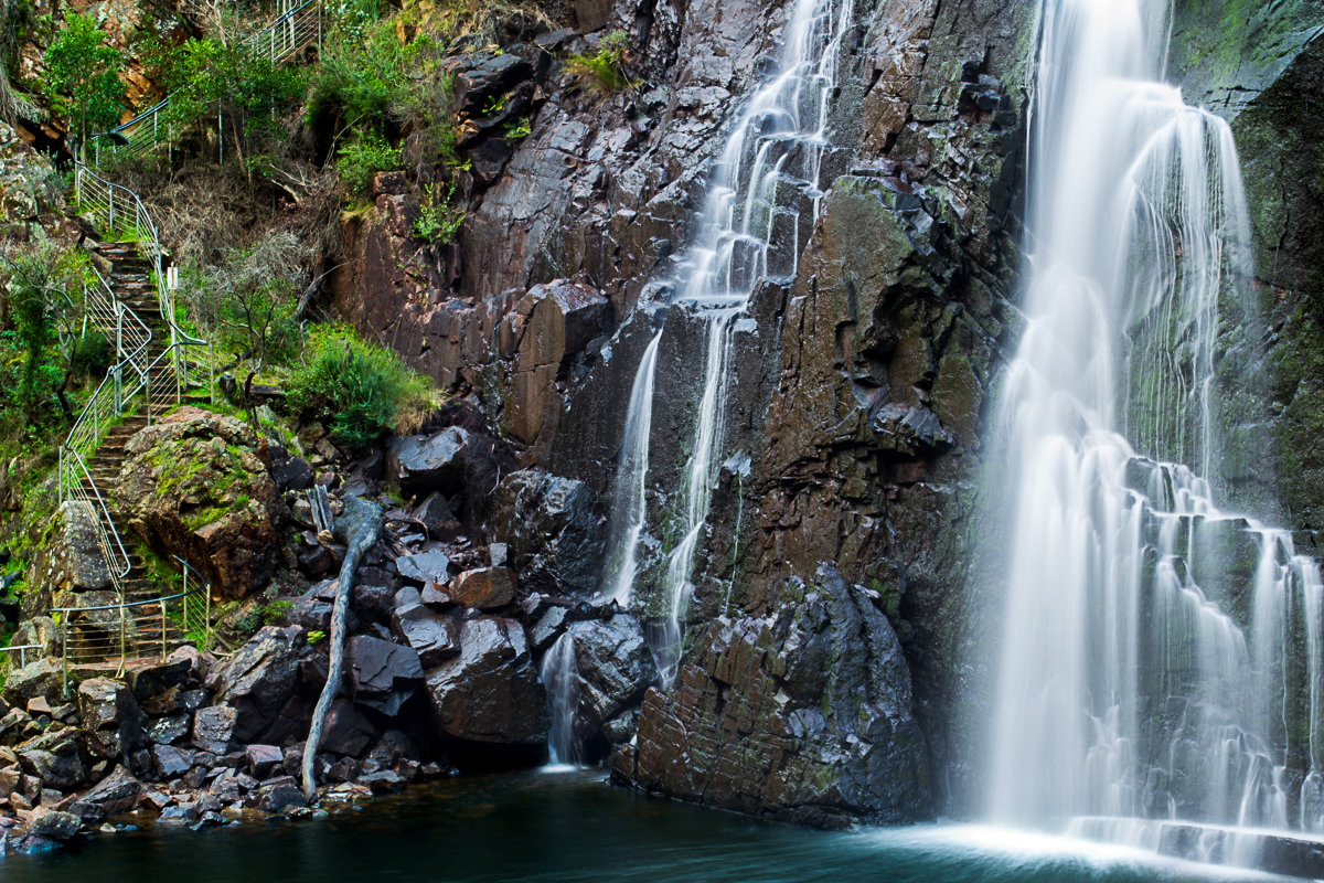 This is a fairly short walk, 2 km return, but please note that there is a large section of extremely steep steps which descend into the gorge alongside the falls.