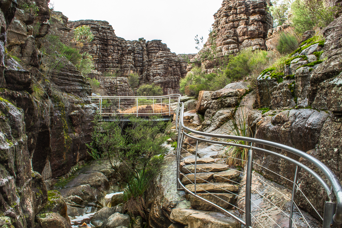 The Grand Canyon is a remarkable rocky gorge situated within the majestic Wonderland Range of the Grampians National Park. This 900m circuit walk offers awe-inspiring scenery and and a seasonal waterfall. Click to read more...